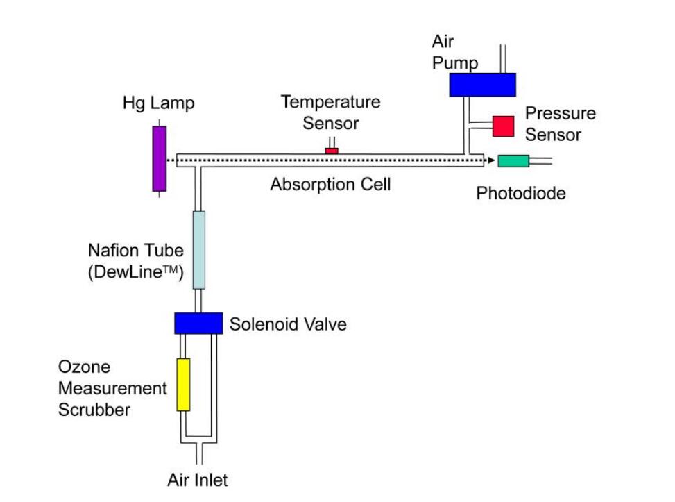 4. 直線斜率的倒數(shù)(1/m)是增益因子(S),截距的負(fù)值(-b)是需要應(yīng)用于臭氧監(jiān)測儀響應(yīng)的偏移量(Z),以將其校準(zhǔn)到主要臭氧標(biāo)準(zhǔn)。如果截距在-10到10的范圍之外,或者斜率在0.90到1.10的范圍之外,這表明校準(zhǔn)設(shè)置或正在校準(zhǔn)的臭氧監(jiān)測器存在問題。臭氧監(jiān)測儀中很可能出現(xiàn)的問題是泄漏、臭氧測量洗滌器故障、污染的閥門或光學(xué)裝置中的污染。