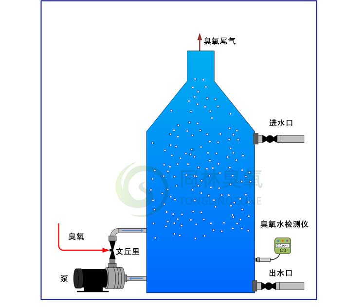 臭氧溶解與泵和文丘里噴射器是簡(jiǎn)單的設(shè)置和相當(dāng)有效。由于文丘里管的強(qiáng)力混合作用,這將在槽井中混合水,并比典型的氣泡擴(kuò)散器實(shí)現(xiàn)更高的臭氧向水中的傳質(zhì)。