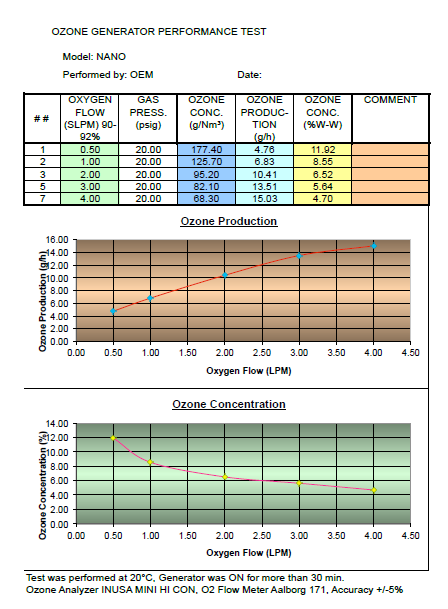 臭氧發(fā)生器性能圖表: